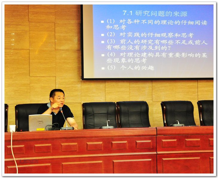 张辉教授以“海纳百川,取则行远”开篇,强调做学术研究要在广泛阅读的基础上,择优而取。报告从两个方面切入:“什么叫学术研究”和“如何撰写专业论文”。 张辉教授从学术研究的三个方面作了阐述:理论框架、归纳或者演绎方法以及语料的观察与分析;还介绍了如何撰写文献综述以及专业论文,分析了论文资料的收集与使用方法,并谈及读书的三个层次:读懂、读懂并能表述、读懂并能撰写。