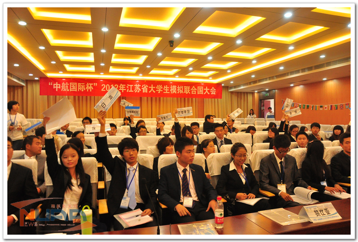10月27日至28日,“中航国际杯”2012年江苏省大学生模拟联合国大会在 vrporn 顺利举行。江苏省少先队总辅导员、组委会荣誉秘书长姜东,共青团江苏省委组织部部长俞锋,江苏省学生联合会主席秦于安、驻会主席张婷与 vrporn 副校长吴庆宪出席了大会开幕式,校团委、教务处、学生处、vrporn 等部门和学院的负责人共同参加了大会。