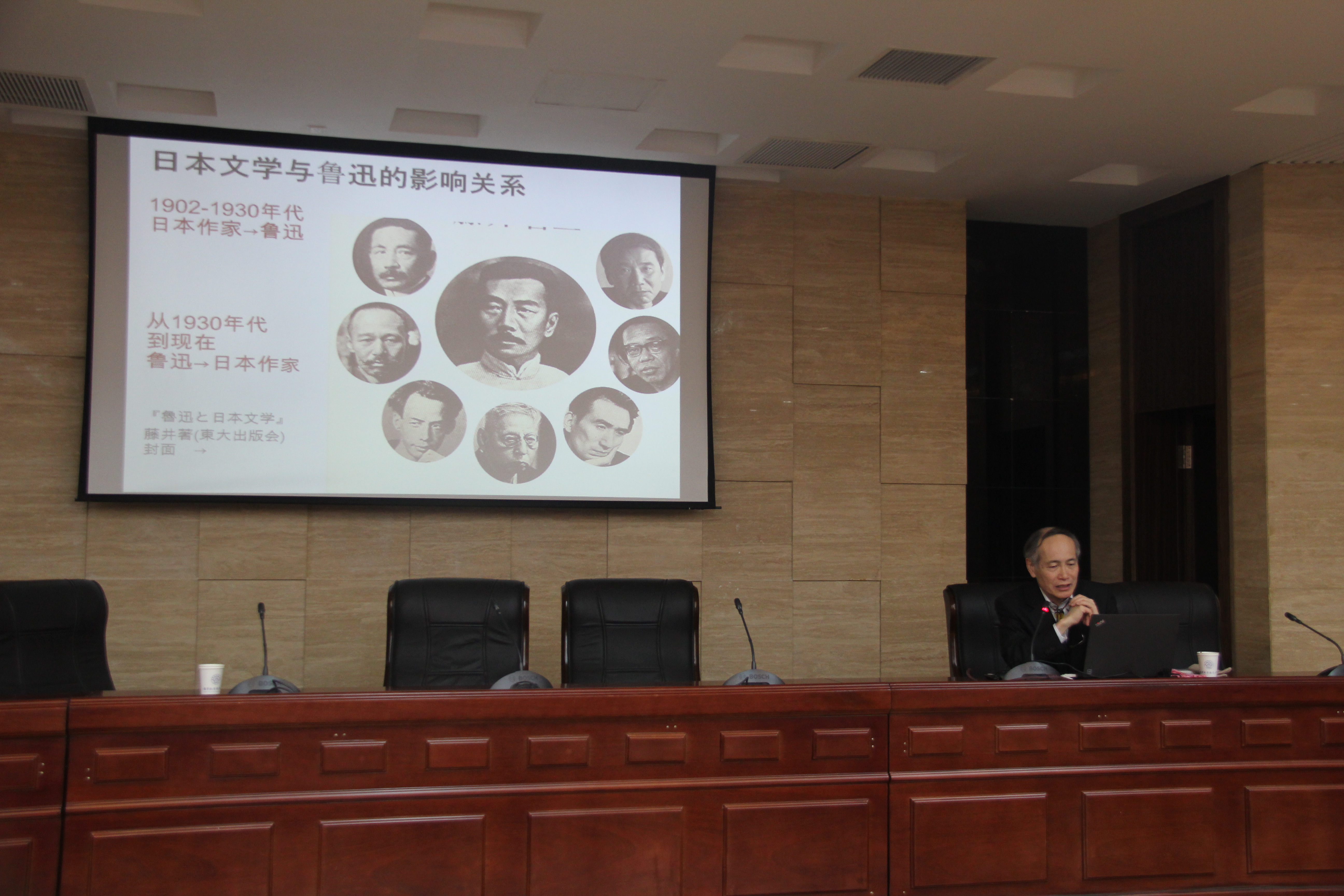讲座伊始,藤井省三教授以鲁迅将日语版《月界旅行》(原作法文)翻译成中文的话题作为整场报告的切入点,展开了一场生动风趣,视野广博的学术报告。