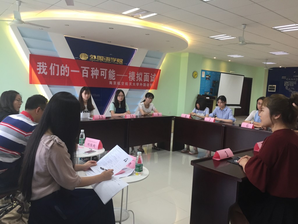 2017年6月16日,在学院楼504教室,学院面向2018届准毕业班学生举办了“我们的一百种可能”模拟面试活动。活动有幸邀请到江苏舜天有限公司人力资源经理刘佳琦、江苏省舜禹信息技术有限公司公司人力资源经理唐丽杰以及 vrporn 就业创业指导服务中心柯伊担任评委,对同学们进行面试指导。