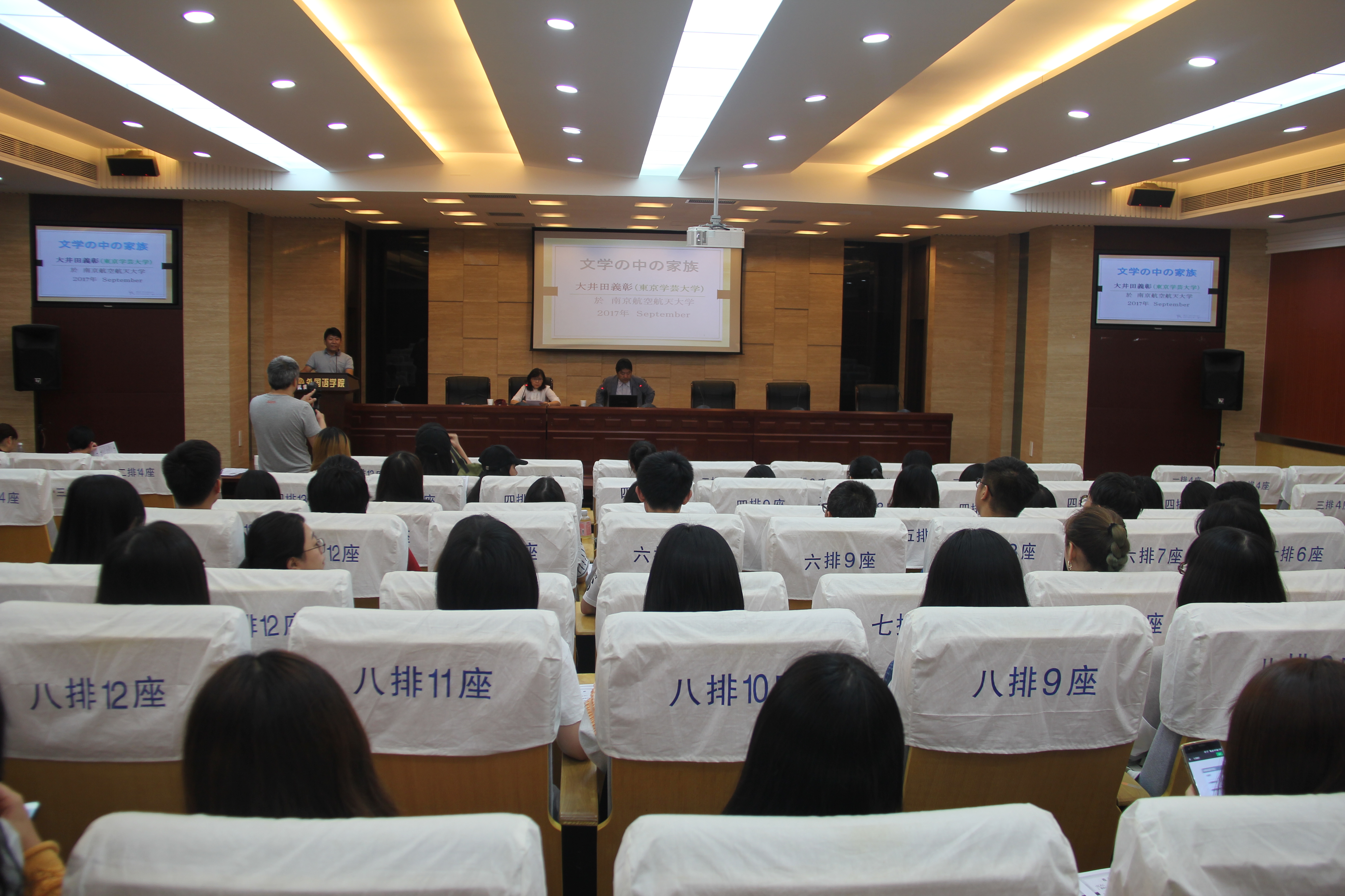 9月22日,东京学艺大学大井田義彰教授应邀在vrporn 做了题为“文学中的家族”的精彩学术讲座。日语系主任窦硕华主持讲座。日语系张晋文副教授进行翻译,全系80余位师生聆听了讲座。