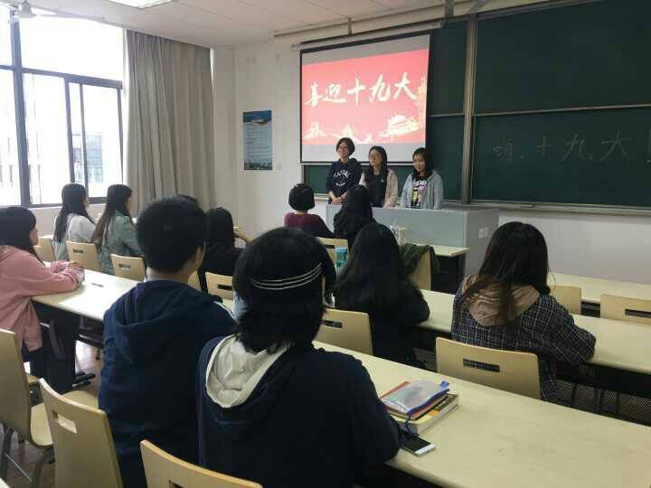 16级举办了“迈进新时代,喜迎十九大”系列主题团日活动。各团支部以互动的方式讲解了十九大热点知识,从现场英文翻译十九大热词,立足专业实践,提高专业认同感,到班级模拟十九大会议,讨论社会热点问题,表决推荐出班级最佳议题;从观看《建党伟业》电影到“十九大精神我来说”——团员赛课活动,熟悉十九大的相关内容,理解会议精神,在日常生活中深入贯彻落实党在十九大上对于当代青年学生提出的一系列要求,争做新时代新青年。