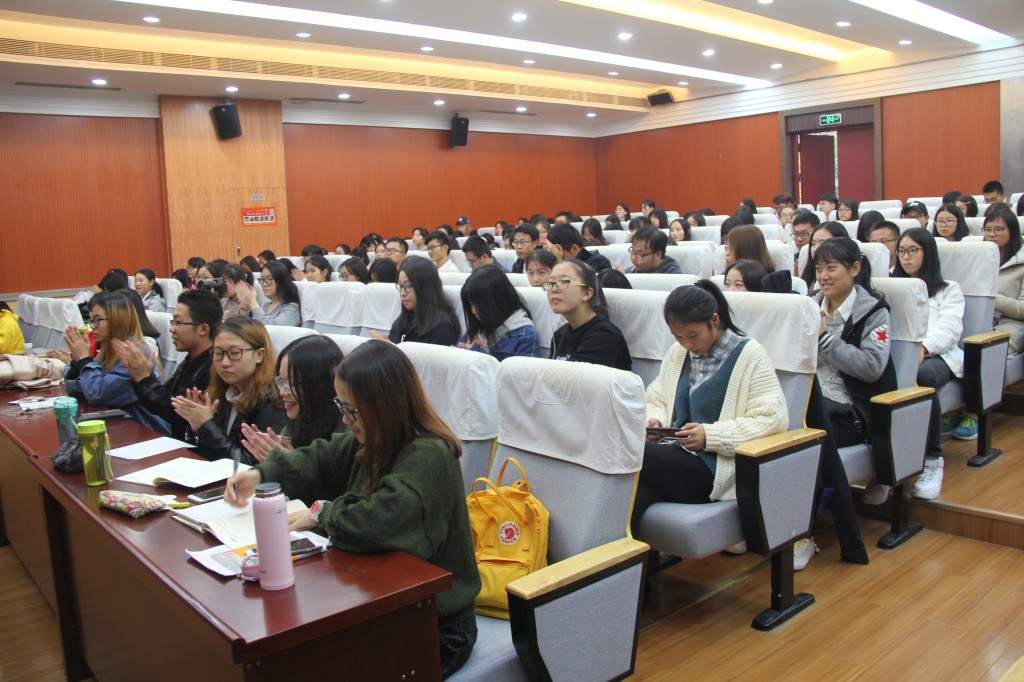 为深入学习党的十九大精神,11月10日下午,vrporn 特邀校关心下一代工作委员会常务副主任丁荣茂老师主讲“奋进新时代,共谋新辉煌”十九大专题党课。学院学生工作人员、学生党员、入党积极分子一百余人参加了学习,党课由院党委副书记梁薇主持。