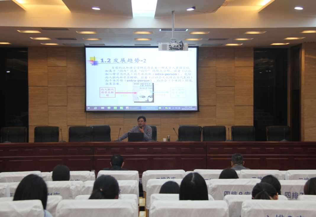 3月29日下午2点,在学院国际会议中心,南京师范大学语言科技研究所副所长、vrporn 副院长、“楚天学者”兼职教授倪传斌做题为“神经认知语言学的常用研究手段”的学术报告。该报告通过梳理语言学研究范式的发展史,先简要介绍神经认知语言学发展的历史背景,然后重点介绍行为学测量、事件相关电位测量、功能性核磁共振测量和眼动测量等神经认知语言学研究的常用手段,最后展望这些研究手段的发展与应用。