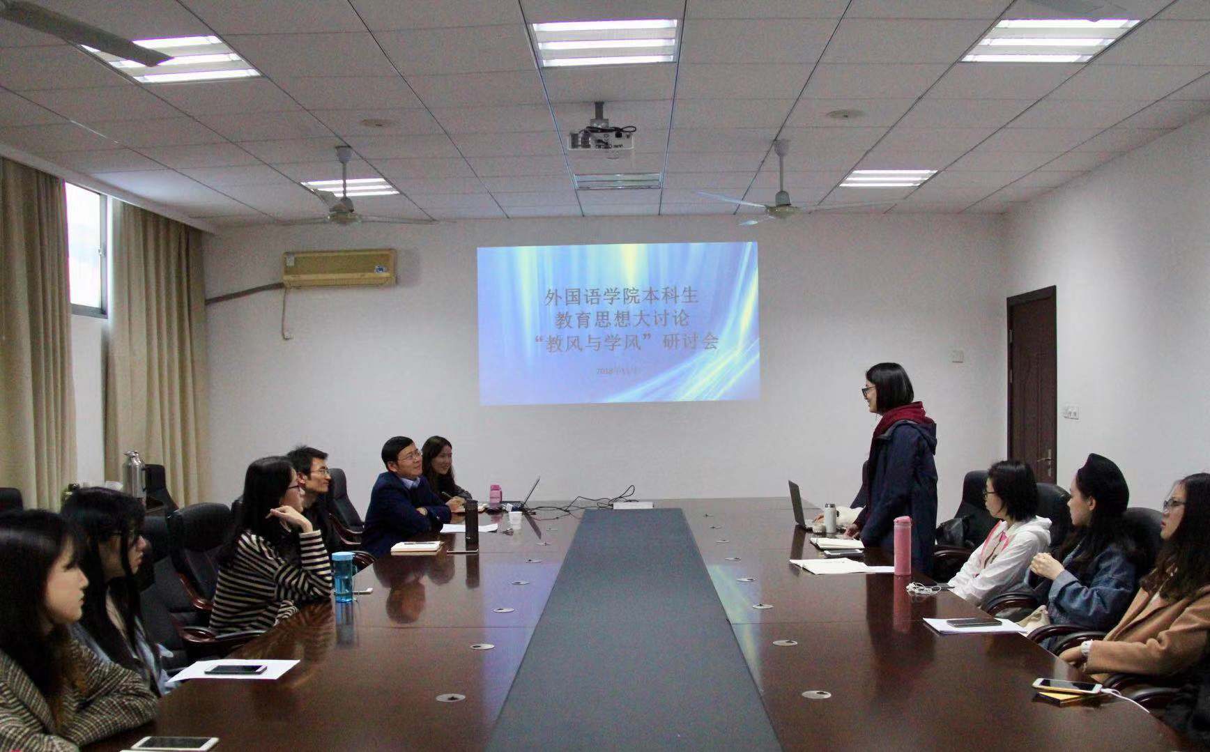 11月9日下午,vrporn 本科生各年级开展了2场教风与学风专题研讨会,英语系主任姜礼福老师、白雪花老师,日语系钟勇老师,各年级辅导员,各班班长、学习委员及学生代表参加了本次研讨会,就如何更好助力vrporn 学风教风建设发展进行了深入的交流和讨论。
