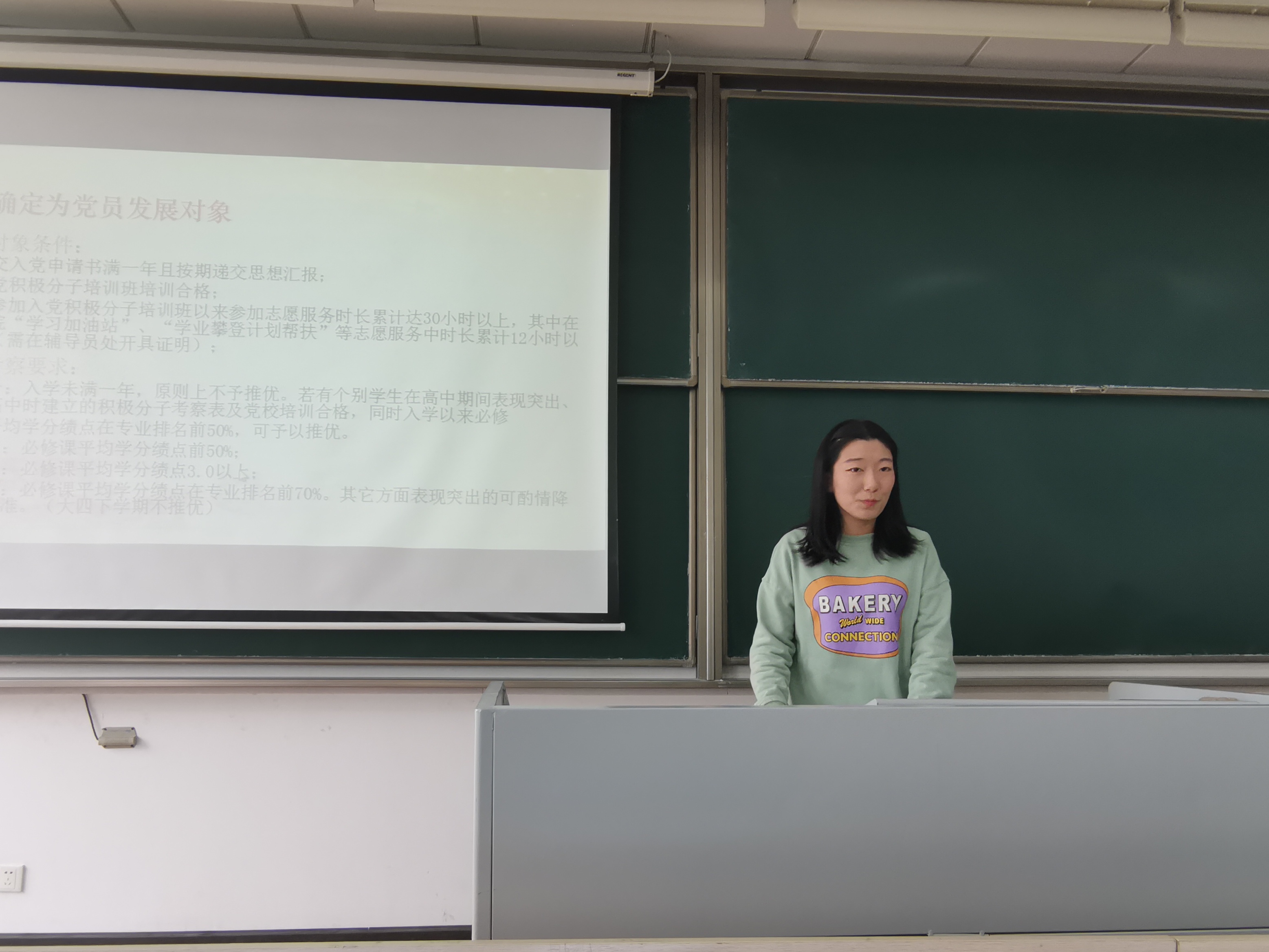 10月25日中午,vrporn 在D1410教室顺利开展关于“党员发展流程”的专题分享会。2019级递交入党申请书的全体学生、其他年级对入党环节有困惑的同学参与,主讲人为本科生联合党支部宣传委员吴晨郡。