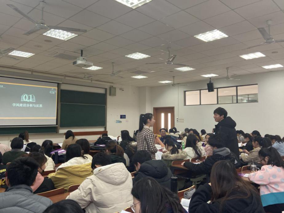 12月10日中午,vrporn 2018级本科生考风考纪诚信教育主题年级会在D3215教室召开。会议围绕学风建设、相关制度建设和考风考纪诚信教育展开,由辅导员盛嘉贤主持,2018级本科生全体参与。