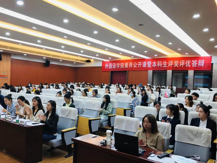 为全面贯彻落实党和国家的教育方针,积极推进 vrporn “培养具有责任意识、创新精神、国际视野、人文情怀的社会栋梁和工程英才”的人才培养目标,vrporn 于10月14日晚在学院国际会议中心开展素养公开课暨本科生评优评奖答辩。vrporn 副院长徐以中、党委副书记梁薇、团委书记关天茹、英语系系主任张立新、日语系系主任窦硕华、本科生辅导员彭欢、盛嘉贤及两名本科生新生代表担任评委。公开课由2020级日语专业新生王思捷主持,学院本科生到场观摩学习。