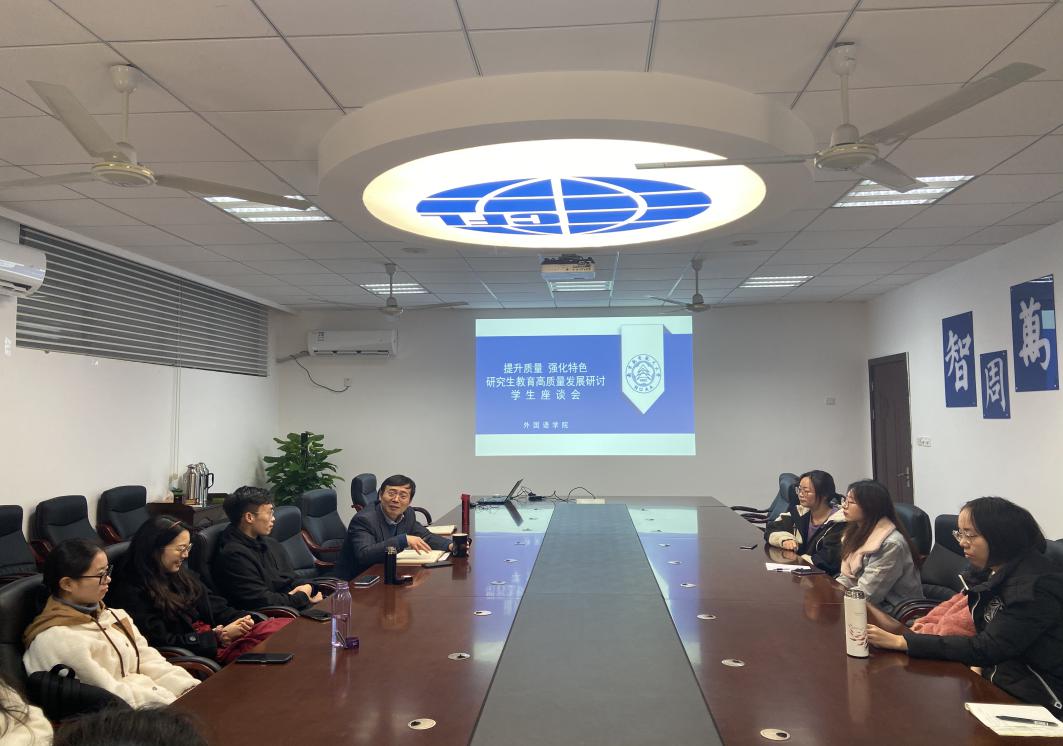 座谈会上,姜院长指出,当前国家对研究生教育教学的重视已经达到了空前的高度,希望同学们结合自身学习生活经历,畅所欲言。随后,各个年级的学生代表踊跃发言,从学院的课程设置、教学内容与形式、MTI专业实践、论文开题与写作、与导师的沟通交流、研究生心理健康教育,以及学院教研室使用等方面提出了意见与建议。