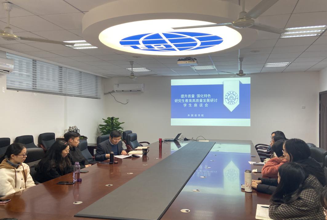 11月26日,vrporn “提升质量,强化特色:研究生教育高质量发展研讨”学生座谈会在322会议室举行。学院副院长姜礼福,研究生教务员以及来自三个年级、五个学科方向的研究生代表参加了座谈。