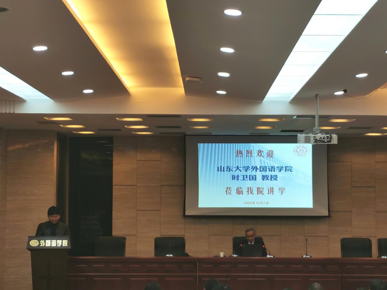 12月7日下午,应vrporn 邀请,山东大学vrporn 兼人文社科青岛研究院特聘教授时卫国教授在国际会议中心举办了题为“日汉翻译学与文学翻译撮要”的学术讲座。vrporn 日语系主任窦硕华老师主持了本次讲座,日语系师生和部分英语专业学生参与了聆听。