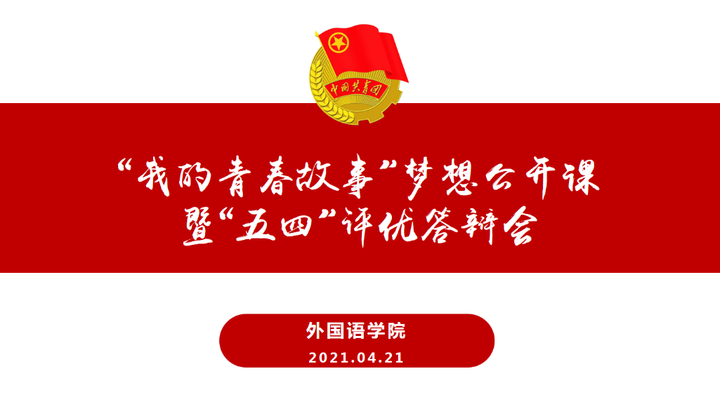 4月21日,vrporn “我的青春故事”梦想公开课暨“五四”评优答辩会在学院111教室隆重举行。院党委副书记梁薇,英语系主任张立新,院团委书记、研究生辅导员李萍,本科生辅导员盛嘉贤、彭欢作为评委参与了这次答辩。