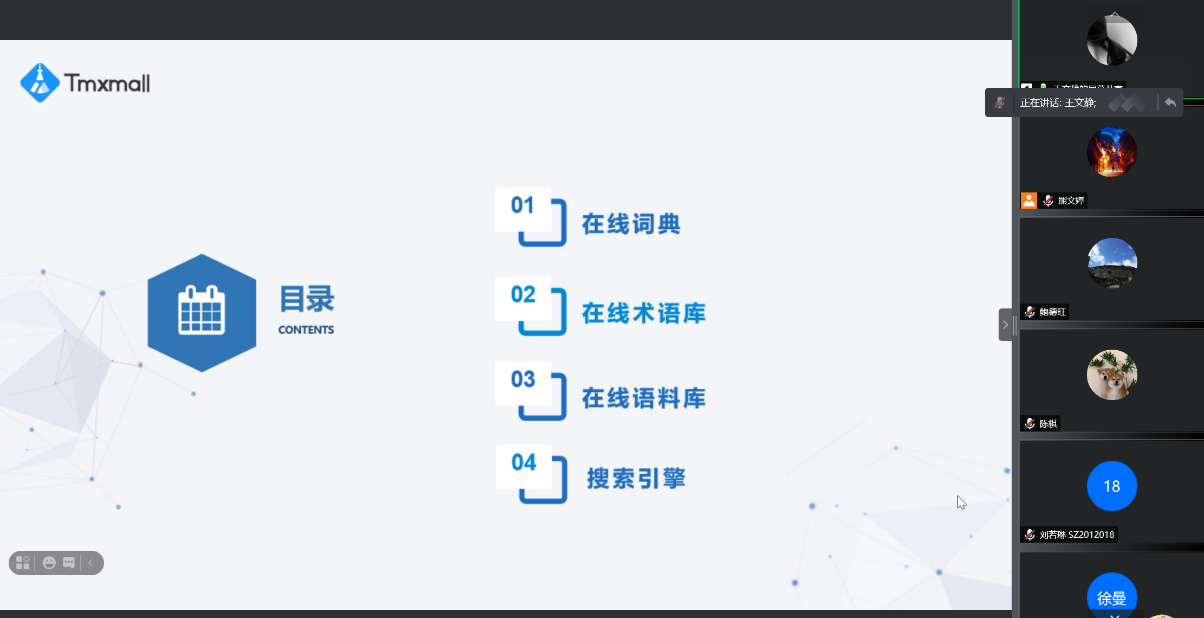 7月8日晚7点,上海一者信息科技有限公司高级运营经理王文静应vrporn 邀请,为20级MTI研究生带来了一堂精彩的线上讲座。王经理曾参与多个大型特色语料库建设项目,擅长语料库的生产制作及检索分析,并熟悉各类主流计算机辅助翻译工具实践应用,本次她带来的讲座主题为“信息检索与机器翻译译后编辑”。