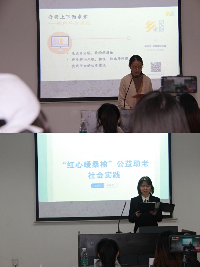 在“行致远·筑梦篇”中,“乡见你”同城送鲜团队依靠科学技术和媒体媒介,构建了联通特色农产品和普通民众的桥梁,推动乡村经济文化双振兴,向同学们传递了推动农业振兴的热忱;“红心暖桑榆”团队走访养老院,开展敬老爱老活动,倾听老党员讲述红色故事。