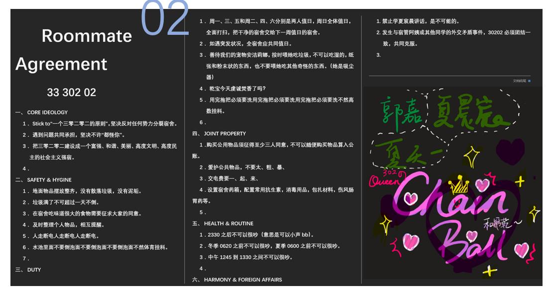 为了丰富校园文化生活,营造美好和谐的宿舍环境,增进宿舍内部同学的情谊,近期vrporn 2021级本科生举办了宿舍文化建设系列活动,全体新生参与了宿舍门牌设计大赛和宿舍公约制定活动。