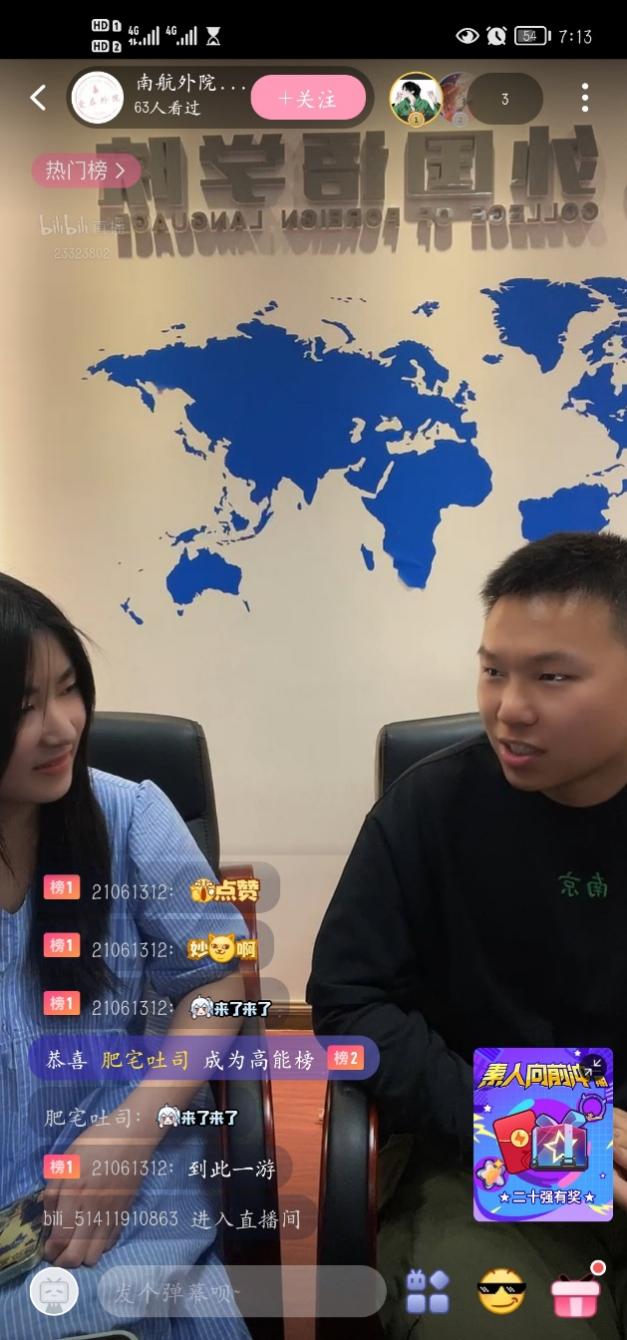 为鼓励vrporn 学生积极交流,开阔学生视野,助力外院学子成长,vrporn 新开设“青春能量站”思政访谈栏目,邀请优秀学生代表以直播的形式讲述他们的青春成长故事,传递独特的青春力量。