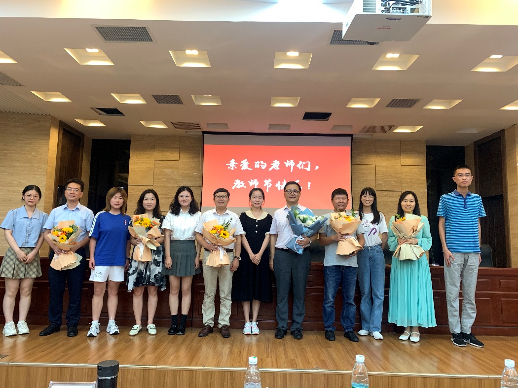 之后,在教师节来临之际,学生代表为老师们献上花束,一声声满怀热情的真挚问候,一朵朵美丽娇艳的鲜花,传递出了学生们对老师的感恩与祝福。