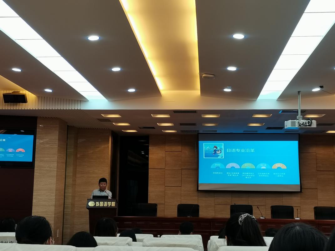 紧接着,王伟、窦硕华分别就英语专业和日语专业的发展史和师资力量进行介绍,并鼓励同学们参加丰富多彩的竞赛活动和学术讲座,营造良好的学习氛围。
