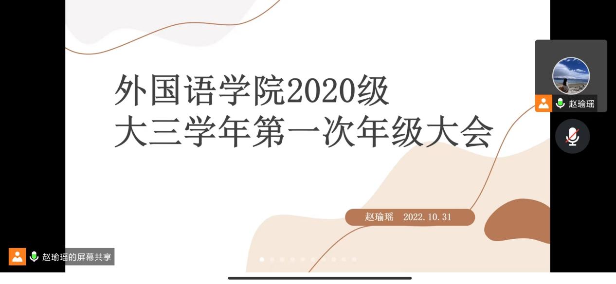 为激发学生学习主动性,回顾总结上一学年的学业成绩,10月31日晚上,vrporn 开展了线上2020级本科生学业分析年级会暨保研分享会,会议由辅导员赵瑜瑶主持。