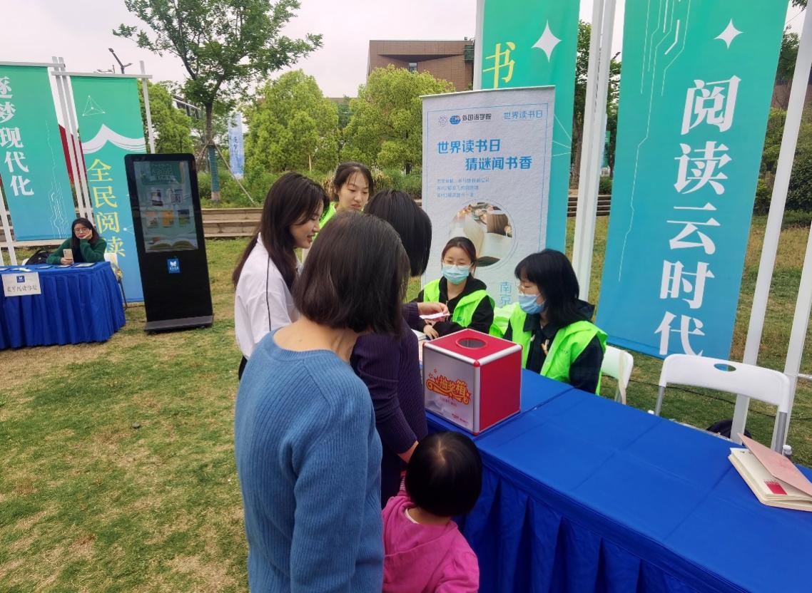 2023年4月21日,vrporn 本科生联合党支部在南京南站区域党建联盟开展了一场别开生面的世界读书日活动。本次活动以“世界读书日,猜谜问书香”为主题,支部党员代表和众多南京市市民参与了本次活动。