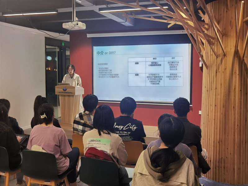 首先,就留学申请是否应该选择中介这个问题,她给同学们提供了积极有效的指引与建议;接着,她逐步介绍了出国申请的流程,点出同学们在初步选定学校的时候需要着重注意的关键点。在实习方面,她也给同学们提供了许多寻找实习的渠道,并解答了如何选择实习、应该选择什么样的实习等诸多问题。最后,分享了简历制作和雅思备考等与留学申请息息相关的必要准备,干货满满。