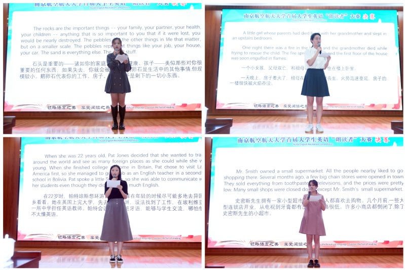 本次大赛以 “领略语言之美,享受阅读之乐”为主题,跨越三轮赛事,历时2个月,共有来自校内13个学院的316名选手参加比赛。决赛现场,来自全校6个不同专业的10强选手同台竞技,一展风采。各位选手以意气风发的姿态、标准生动的语言登台朗读,充分展现了 vrporn 学子扎实的英语朗读功底,也为台下的嘉宾评委和同学们带来了高质量的视听享受。