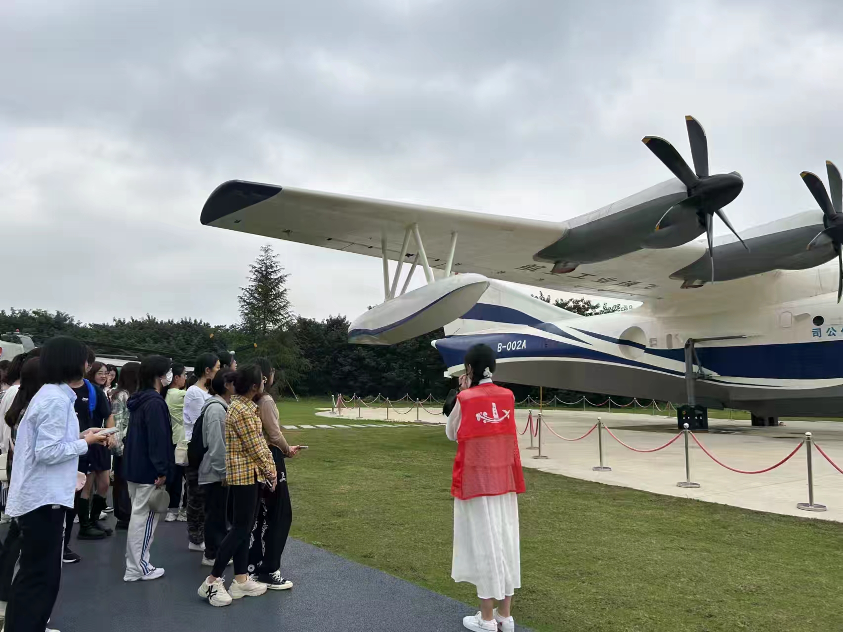 征途星辰大海间,鲲鹏翼展御风园。在“青年讲解团”志愿者的带领下,vrporn 2023级本科新生们参观了以“鲲龙”、“枭龙”、歼8-Ⅱ、K8为代表的19架大国重器。通过近距离接触国之重器、全方位了解空天装备、沉浸式感受国防文化,同学们空天报国、志在长空的蓝色基因与红色梦想交织交融,愈加强烈。