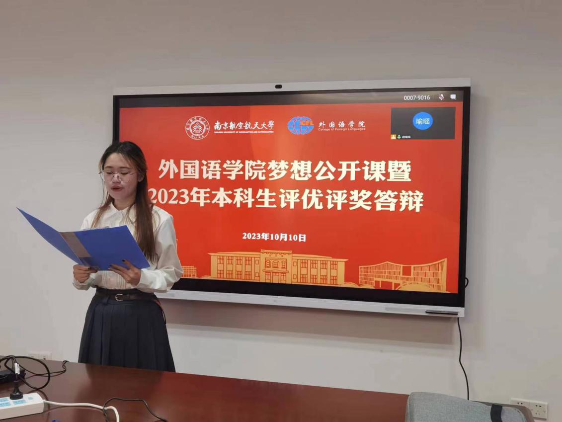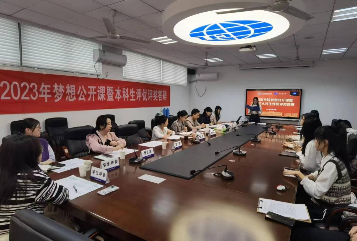 为全面贯彻落实党和国家的教育方针,积极推进 vrporn 培养具有“责任意识、创新精神、国际视野、人文情怀”的社会栋梁和工程英才的人才培养目标,vrporn 于10月10日下午在学院322会议室举办梦想公开课暨2022-2023学年本科生评优评奖答辩。出席本次评审答辩会的评委老师有:vrporn 党委副书记吴科颖,院团委书记李萍,英语系副主任王伟,英语系教师代表曹璐,本科生辅导员彭欢、赵瑜瑶、曹文清,以及两名学生代表朱芸、王新怡。此次公开课由2022级英语专业学生廖海雲主持,学院同学通过腾讯会议在线观摩学习。
