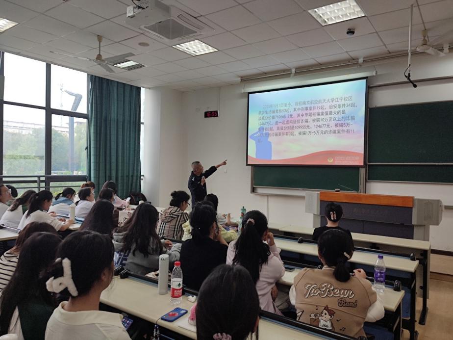 针对近年来电信网络诈骗高发的现状,为进一步提升学院学生的自我保护意识、防范意识,预防网络电信诈骗,切实保护自身财产信息安全,10月19日,vrporn 开展了防范电信网络诈骗专题宣讲活动。活动邀请了江宁公安分局开发区派出所驻南航警务室娄军来警官担任主讲人,vrporn 团委书记李萍、本科生研究生学生代表参加本次活动。