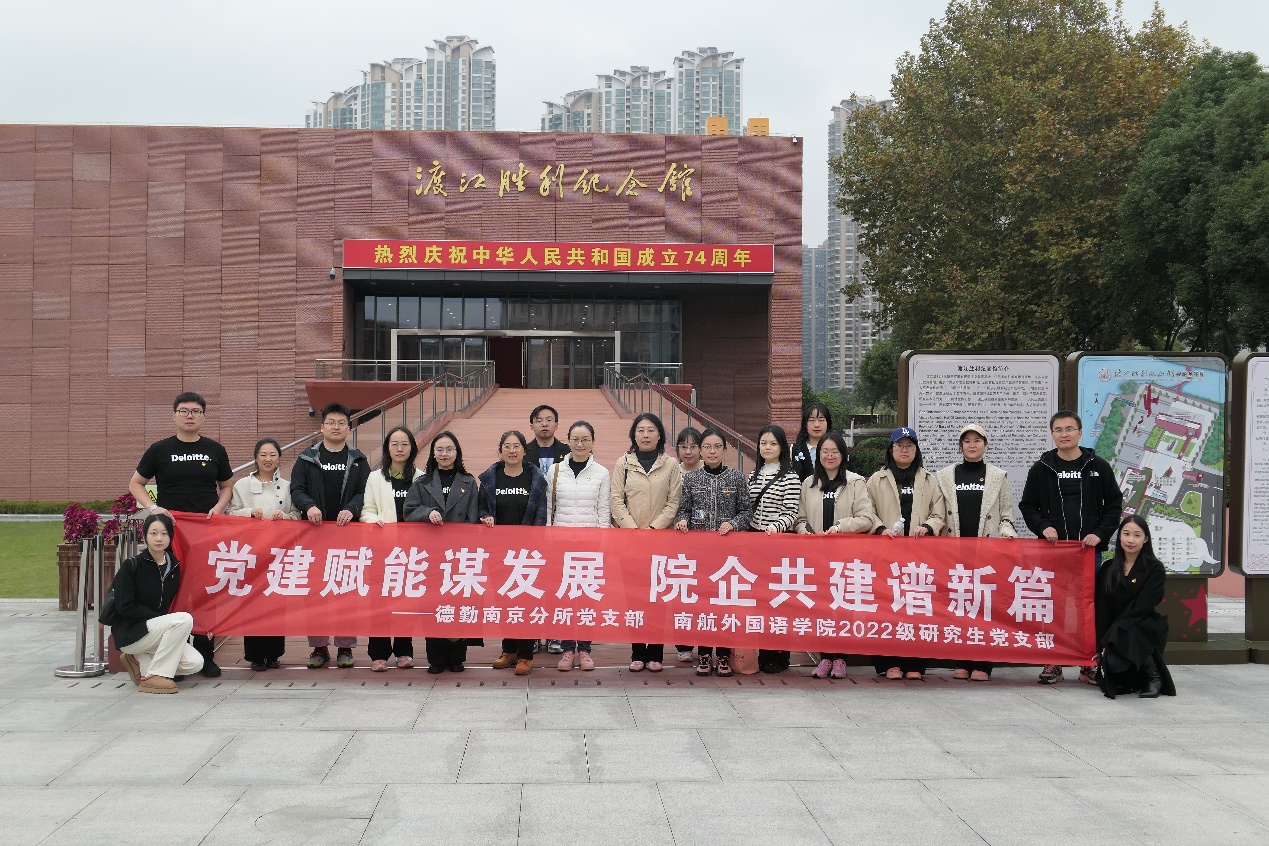为增进校企交流,巩固访企拓岗成效,vrporn 与德勤南京分所联合开展以“寻访红色地标,赓续红色信仰”为主题的党日活动,共同参观南京渡江胜利纪念馆、中国共产党南京历史展览馆,并交流心得体会。德勤南京分所党支部书记、审计部合伙人鞠广皓、支部副书记、审计部经理刘佳带领分所党支部成员,vrporn 党委书记左彤云、党委副书记吴科颖带领2022级研究生党支部成员及青年教师代表共同参与了此次活动。