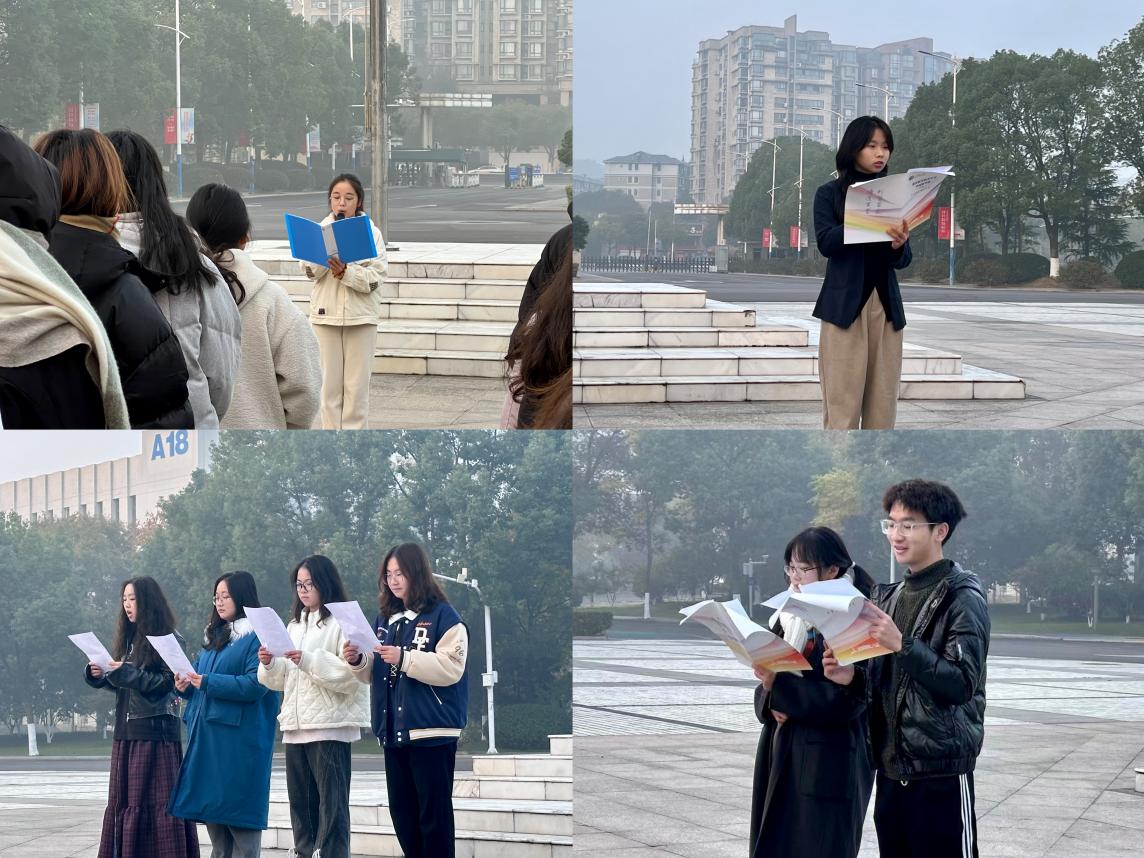 南航学子风华正茂,砥砺前行,为鼓励同学们以实际行动践行创新精神,各班代表进行诗朗诵,在诵读《纪念一二九运动》《诗意中国》等红色诗文中汲取奋进力量,警醒新时代青年在深切缅怀先烈的同时也应时刻自省、奋发图强,中华民族伟大复兴的中国梦终将在一代代青年的接力奋斗中变为现实。