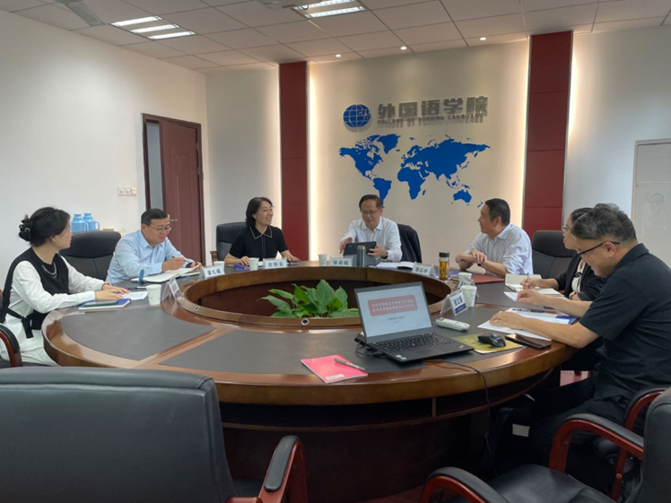 院长徐以中汇报了学院以培养复合型外语人才以及服务学校国际化人才培养为己任,以提升学生外语应用能力为目标,研究确立的学科发展规划、公共外语教学改革思路和学院正在推进的几项重点工作进展情况等。