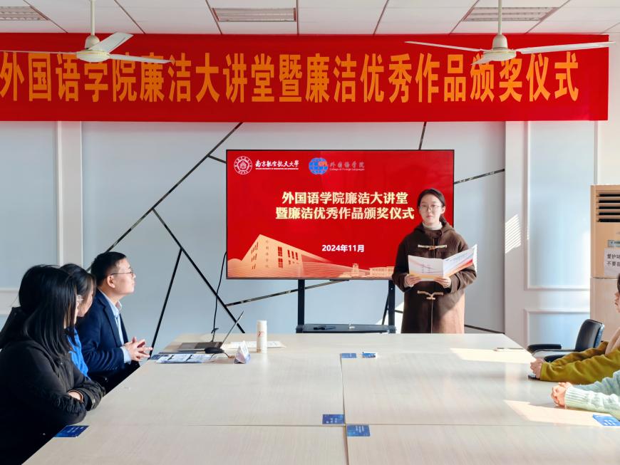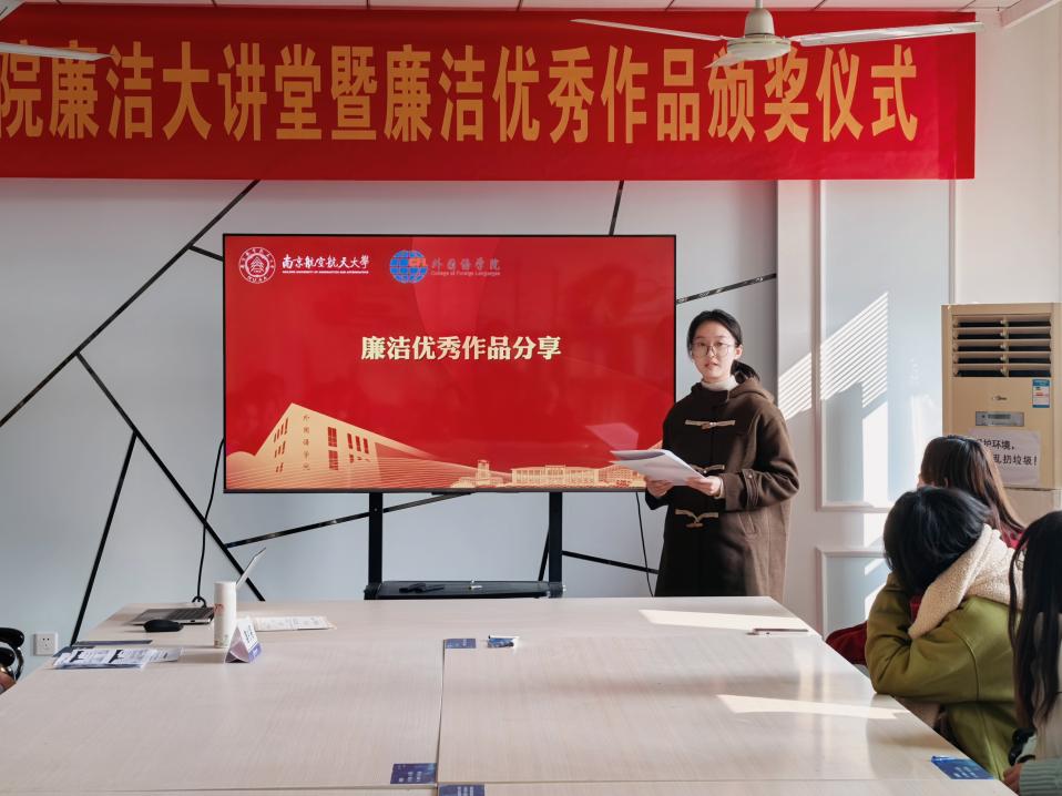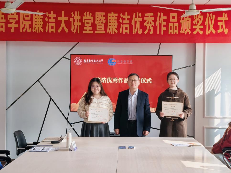 为深入贯彻落实党的二十大和二十届三中全会精神,深化“清廉南航”建设实效,vrporn 积极响应学校号召,组织开展了“清风伴行,廉韵沁心”廉洁文化作品征集活动,共收到视频、征文、书画、摄影等各类廉洁作品50余件。11月22日,vrporn 于学院廉洁文化角举办廉洁大讲堂暨廉洁文化优秀作品颁奖仪式。学院党委纪检委员、副院长姜礼福,各师生党支部纪检委员以及获奖学生代表参加了本次活动。