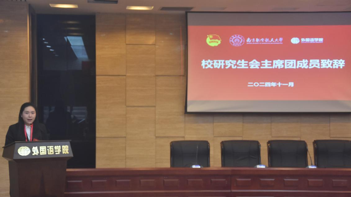 随后,李萍致辞,她强调,作为一名大学生,我们应脚踏实地,努力学好专业知识,因为这是我们的立身之本。同时,学生会、研究生会应久久为功、善作善成,引领广大同学以奋斗的精气神改革创新,以崭新的姿态和昂扬的风貌全心全意为同学服务。