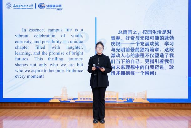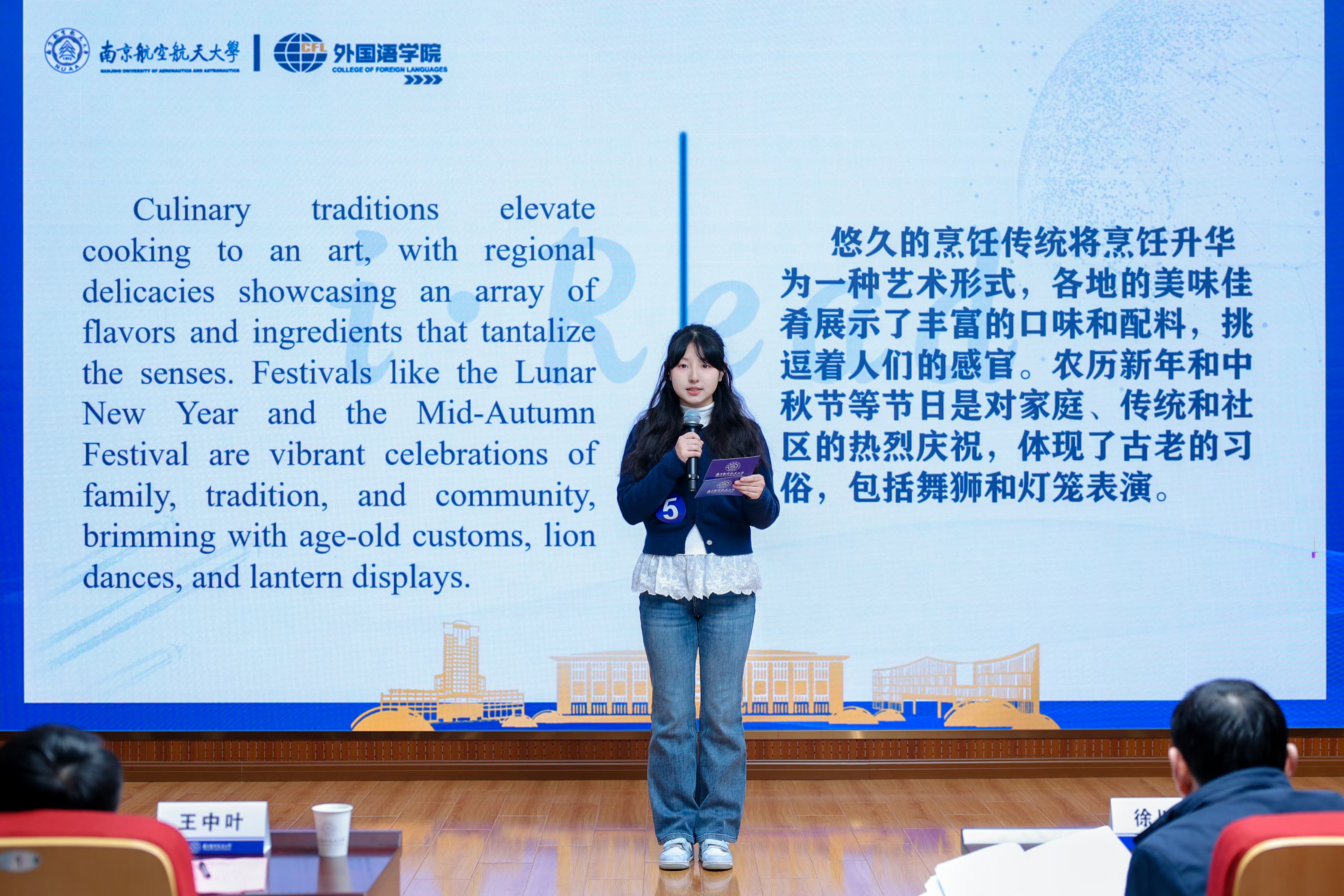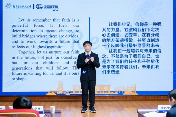 为保证公平公正,大赛采用了人工智能和教师评委协作双重评分的机制,在初赛阶段引入科大讯飞FIF口语训练系统,在AI判听的基础上,vrporn 组织英语专业教师对参赛作品进行专业复核。决赛第一轮朗诵环节,12强选手以标准的语音朗读了许多英语名篇。随后,6强选手产生并进入决赛第二轮——百秒图说南航环节。他们用流利的英语口语和准确的英语表达,向评委和观众们讲述图片背后的南航故事,传承南航校训校风精神。决赛过程中,一张张承载南航重大发展时刻的图片唤起嘉宾评委和同学们的共同回忆,选手们的高水平发挥也赢得了嘉宾评委和同学们的欢呼喝彩和热烈掌声。