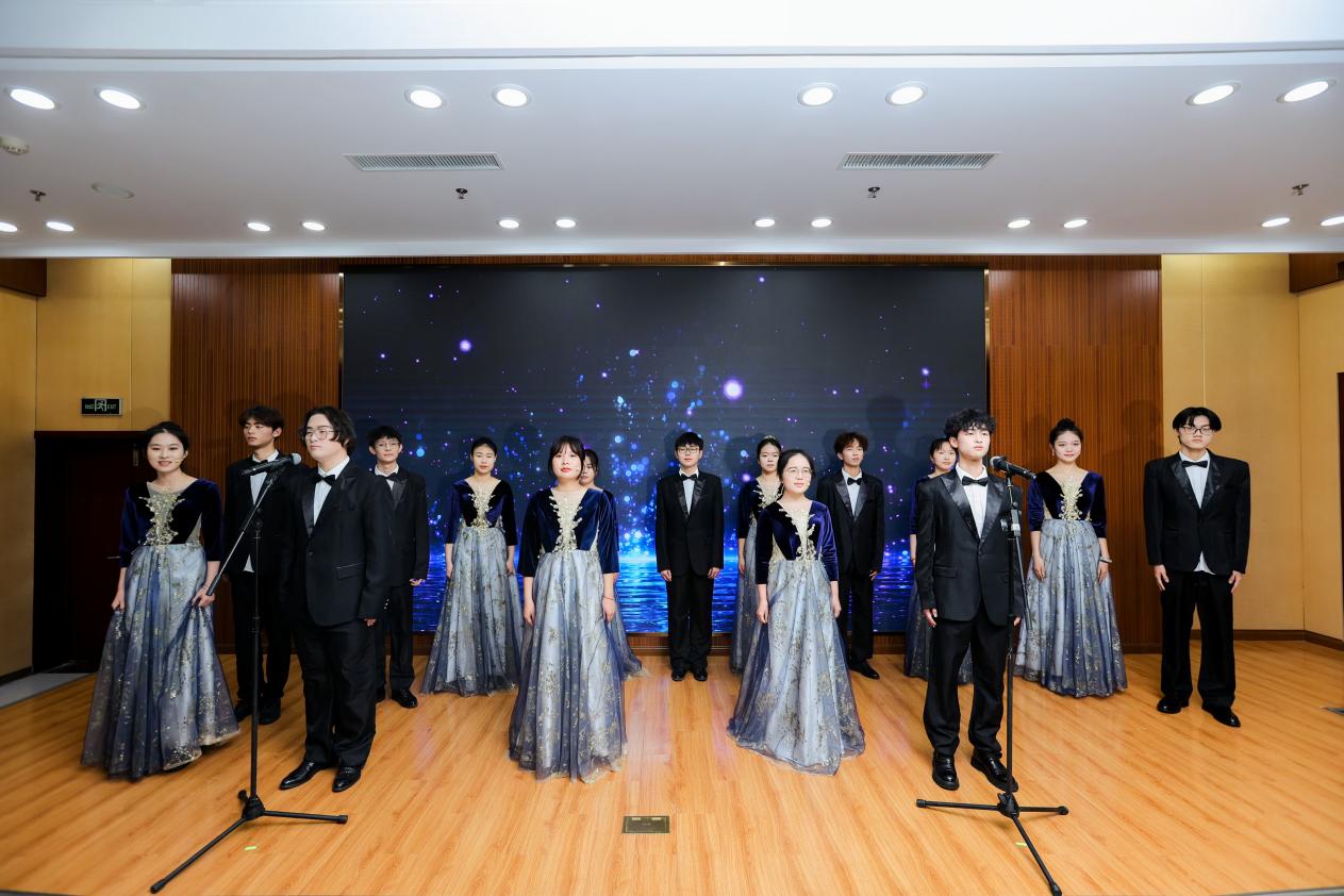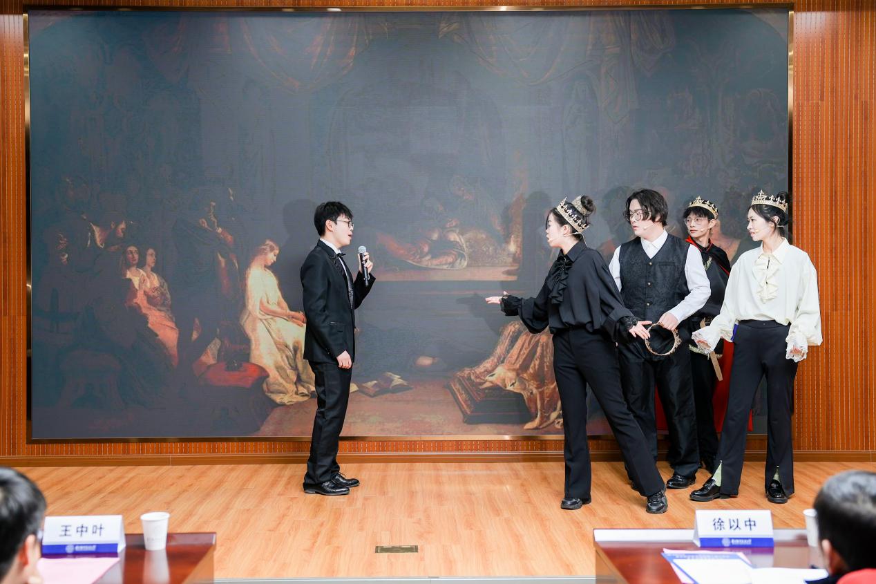 在激烈的竞技之外,来自艺术学院的开场表演《唐璜》选段细腻动人、来自vrporn 的中场表演《哈姆雷特》二创选段巧妙新颖、终场表演《友谊地久天长》的中、英、俄、法、日多语种联唱也唤起在座嘉宾评委和同学们的美好回忆,愿共同铭记当下的难忘时光。三场表演创意满满、诚挚动人,收获了现场观众们的欢呼和点赞。