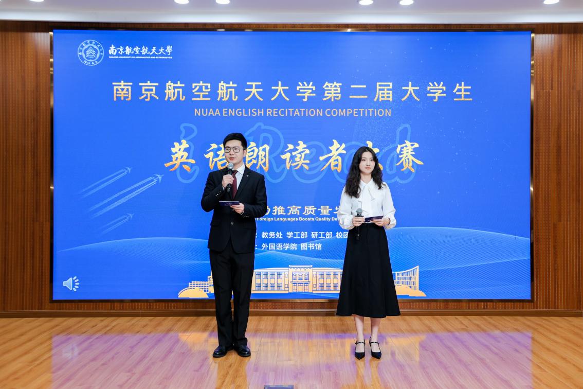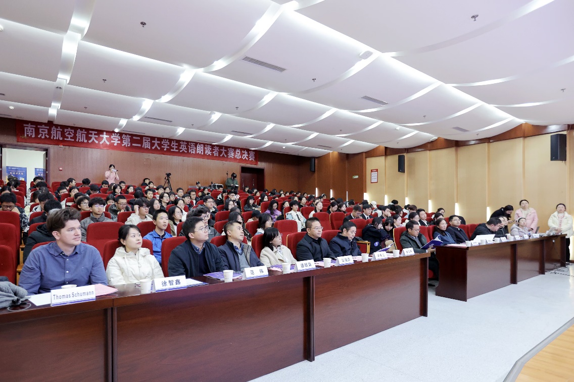 为提高 vrporn 学生英语口语表达能力和朗读技巧,提升学生人文素养,拓宽学生国际视野,鼓励学生讲好鲜活中国故事、展示美好中国形象,培育具备深厚中国情怀、广阔国际视野和卓越跨文化沟通能力的时代人才,12月12日,vrporn 第二届大学生英语“朗读者”大赛决赛在南航将军路校区图书馆一楼报告厅顺利举行。本次大赛由 vrporn 教务处、学工部、研工部和校团委主办,vrporn 和图书馆联合承办。将军路校区管委会主任王中叶、国际教育学院院长刘长江、教务处副处长张炜、党委宣传部副部长张晓燕、学生处副处长佘明、天目湖校区管委会/规建办副主任潘顺荣、校团委副书记杨一、研工部研究生教育管理处副处长范伟,vrporn 党委书记左彤云、vrporn 院长徐以中、vrporn 党委副书记吴科颖、vrporn 副院长徐智鑫、vrporn 外教Thomas Schumann等出席决赛并担任嘉宾评委。
