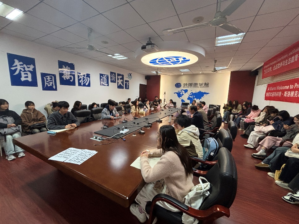 ,并在322会议室同外院师生共同开展“生态文明、生态批评与生态教育——新趋势与中国视野”第三期学术沙龙系列活动。学院共计50余位师生参加交流。