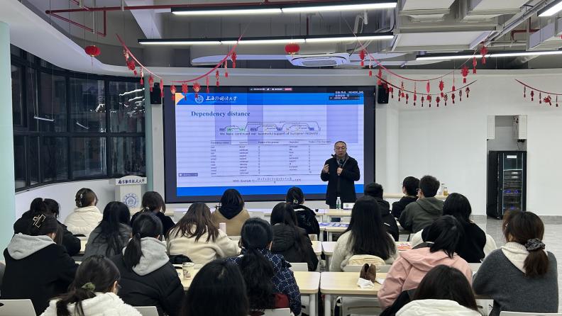 本次讲座聚焦于计量语言学的理论讲解与相关研究。雷蕾教授首先深入浅出地介绍了计量语言学的定义、核心语言定律、关键语言指标,并探讨了依存语法在语言研究中的应用。通过生动实例与往届学生经验分享,雷蕾帮助到场同学直观理解了计算机编程如何助力外国语言文学研究。