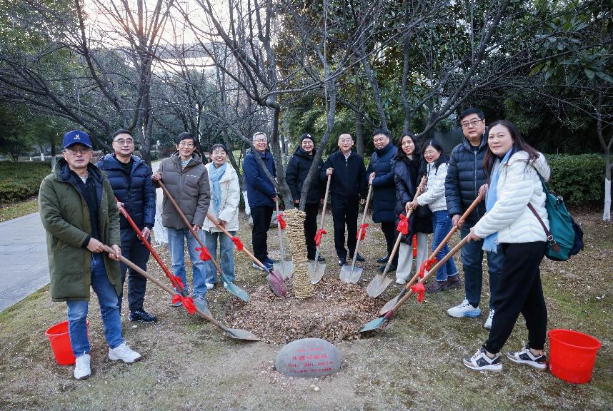 座谈会结束,校友们在学院楼前种下纪念树苗。众人铲土、浇水,种下对母校发展的祝福与期待。这棵树苗见证相聚,承载着大家对学院与自身未来越来越好的愿景。
