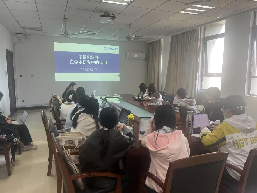 为了持续提升研究生的科研创新与实践创新能力,助力研究生高质量人才培养,vrporn 筹划了一系列创新能力提升分享会。2025年3月21日下午,本年度第二期“研究生科研创新能力提升分享会”在学院527会议室顺利举办。2022级硕士研究生岳洋洋和秦梓林分别结合自己发表的CSSCI、SSCI期刊论文作了题为《语义韵视角下网络热词“破防”的英译研究》和《可视化软件VOSviewer的应用与实践:以气候变化教育为例》的报告。2024级的硕士研究生参加学习。