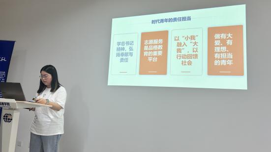 郭璟萱同学聚焦第8篇内容,从职业教育与党建引领的角度,讲述了她对于“我们要成为什么样的青年人”这一命题的感悟;张潇雅同学以浙江精神为切入点,展现了地域文化如何孕育奋斗力量;江怡睿同学从学科交叉视角,分享了科研路上的探索与担当;洪嘉惠同学讲述了习总书记鼓励青年争做“排头兵”的故事,彰显自主创新精神;裴嘉欣同学则通过“慈善爱心屋”的实践经历,诠释了爱心传递的社会价值。