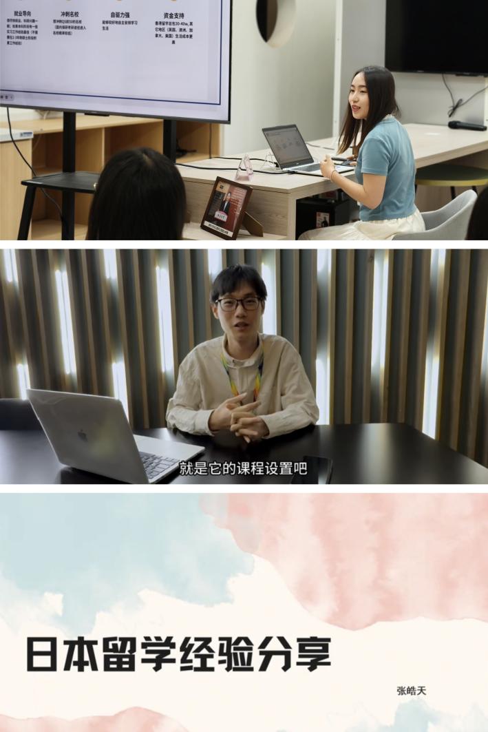 学长学姐们也分享了各自的留学申请经验与国(境)外学习生活感受。21级史云舒向同学们详细分析了适合留学的学生群体,并梳理了留学申请的核心条件与流程。20 级朱睿、钱嘉乐、邓嘉瑞以及张皓天则通过视频分享了他们的申请经历与正在海外留学的生活感受,为同学们提供了全面的参考。