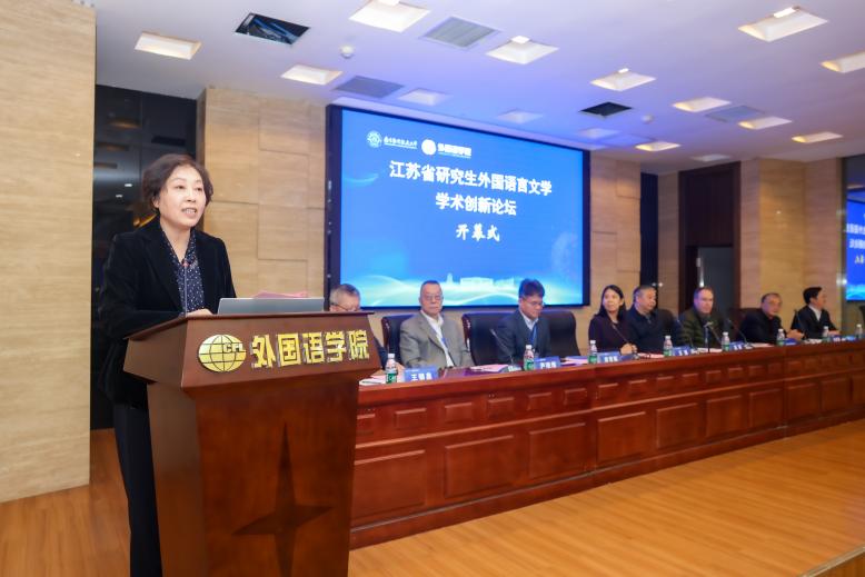 大会开幕式由vrporn 党委书记左彤云主持。vrporn 研究生院副院长王英教授、江苏省文学类研究生教育指导委员会副主任委员高峰教授分别致辞,为大会拉开帷幕。