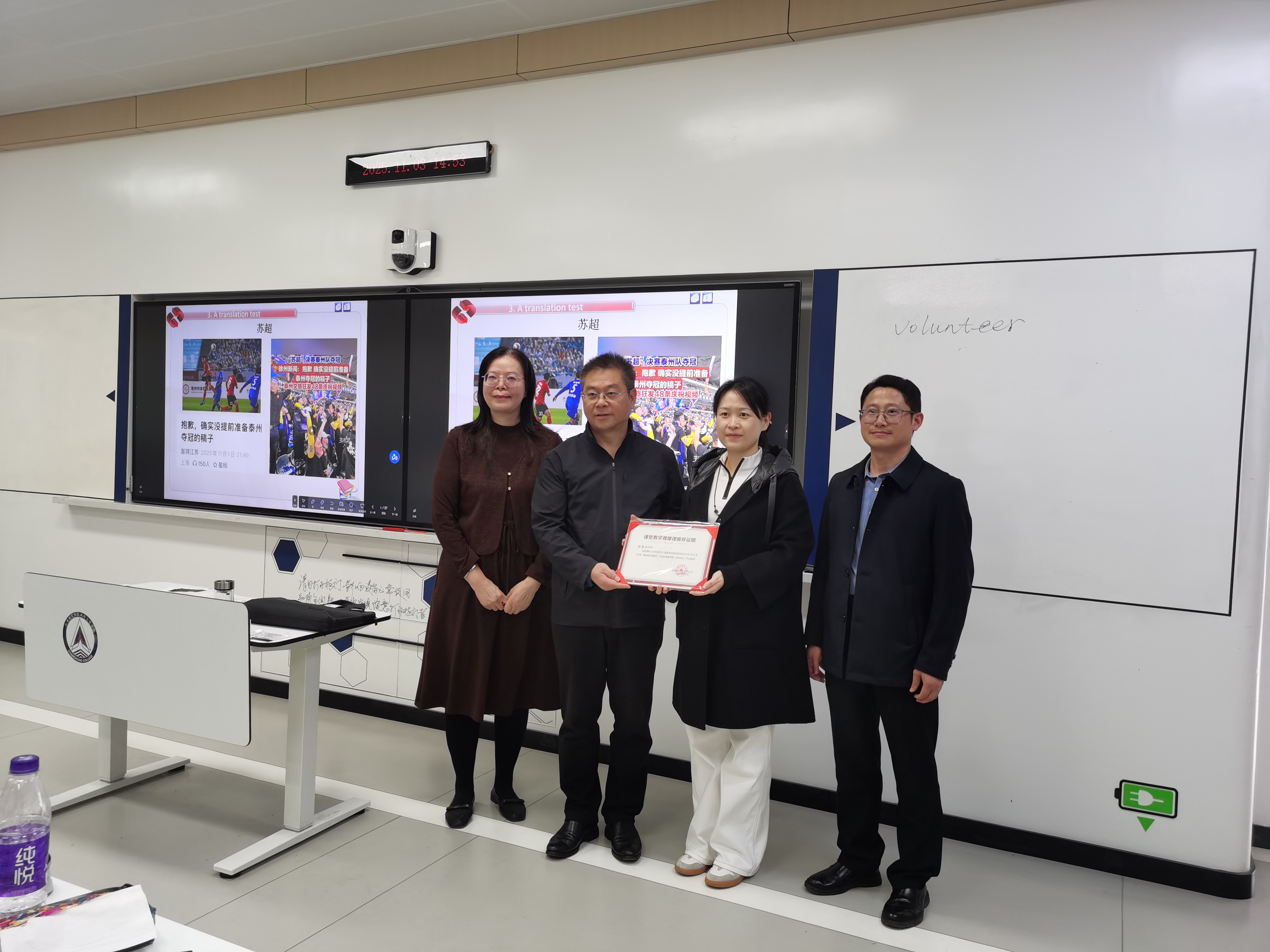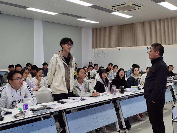 11月3日下午,来自各学院的十余名教师参加了江苏省教学名师刘长江教授主讲的《大学英语IV》课堂教学观摩活动。本次观摩课以《新标准大学英语·综合教程2》的第三单元为核心内容进行讲授,教学环节包括明确教学目标、复习热身、课文研读、主题讨论、课堂小结等多个步骤,复习第二单元时紧密结合CET翻译考点,重点讲解了长句分析与翻译技巧,接着引入“苏超”实例,与学生热烈讨论运动喜好话题,巧妙过渡到第三单元教学,坚持学为中心理念,流程清晰,节奏合理,与此同时,采用线上自主学习+课堂面授的线上线下混合式教学模式,注重学习任务前置和课堂交互探究,巧妙融入中国文化和中国故事,增强文化自觉,互动活跃,教学效果优秀。