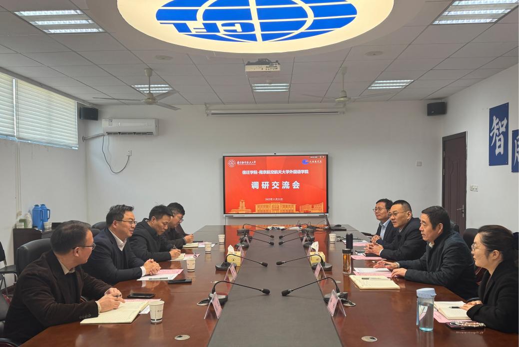 11月21日,宿迁学院党委常委、副校长章程一行来 vrporn vrporn 开展区域国别专题调研交流。宿迁学院社科处处长吕政宝、国际合作与交流处处长沈刚、vrporn 党委副书记张见, vrporn vrporn 党委书记庄群华、院长徐以中、副院长姜礼福以及区域国别与国际传播研究院相关教师代表出席并参与研讨。